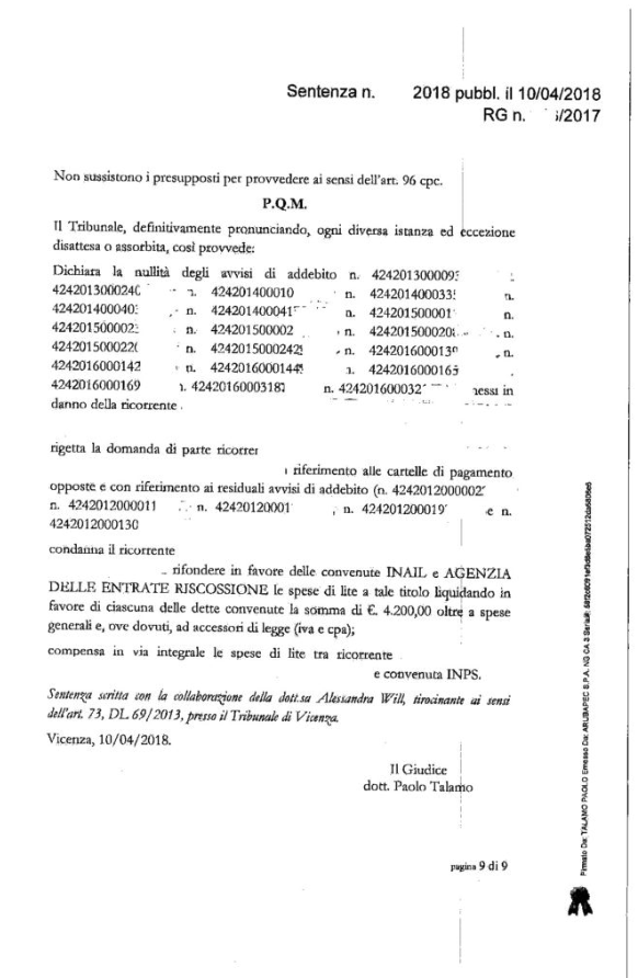 352.000 € di cartelle cancellate a Riccardo, imprenditore di Vicenza.